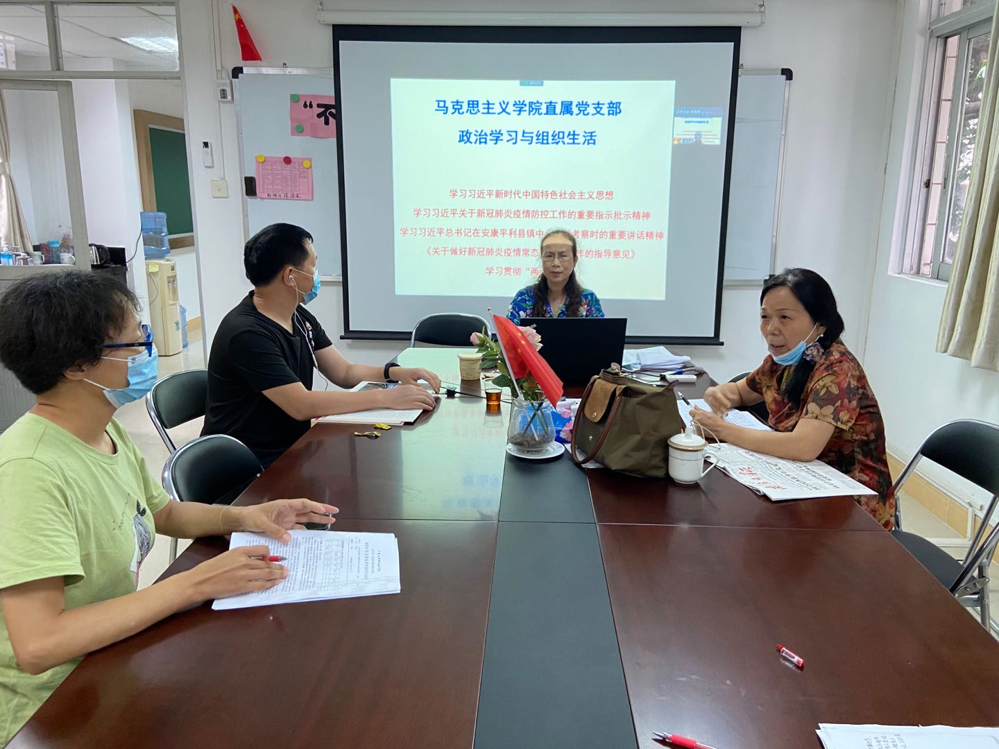 马克思主义学院直属党支部于2020年6月2日下午2时通过腾讯会议开展在线政治学习与组织生活,以确保常态化疫情防控期间教职员工思想政治工作和教育学习,会议由常务副院长李瑞清主持,全体党员教师参加。主要学习习近平新时代中国特色社会主义思想,学习贯彻全国两会精神,学习习近平总书记在安康平利县镇中心小学考察时的重要讲话精神,以及《关于做好新冠肺炎疫情常态化防控工作的指导意见》。