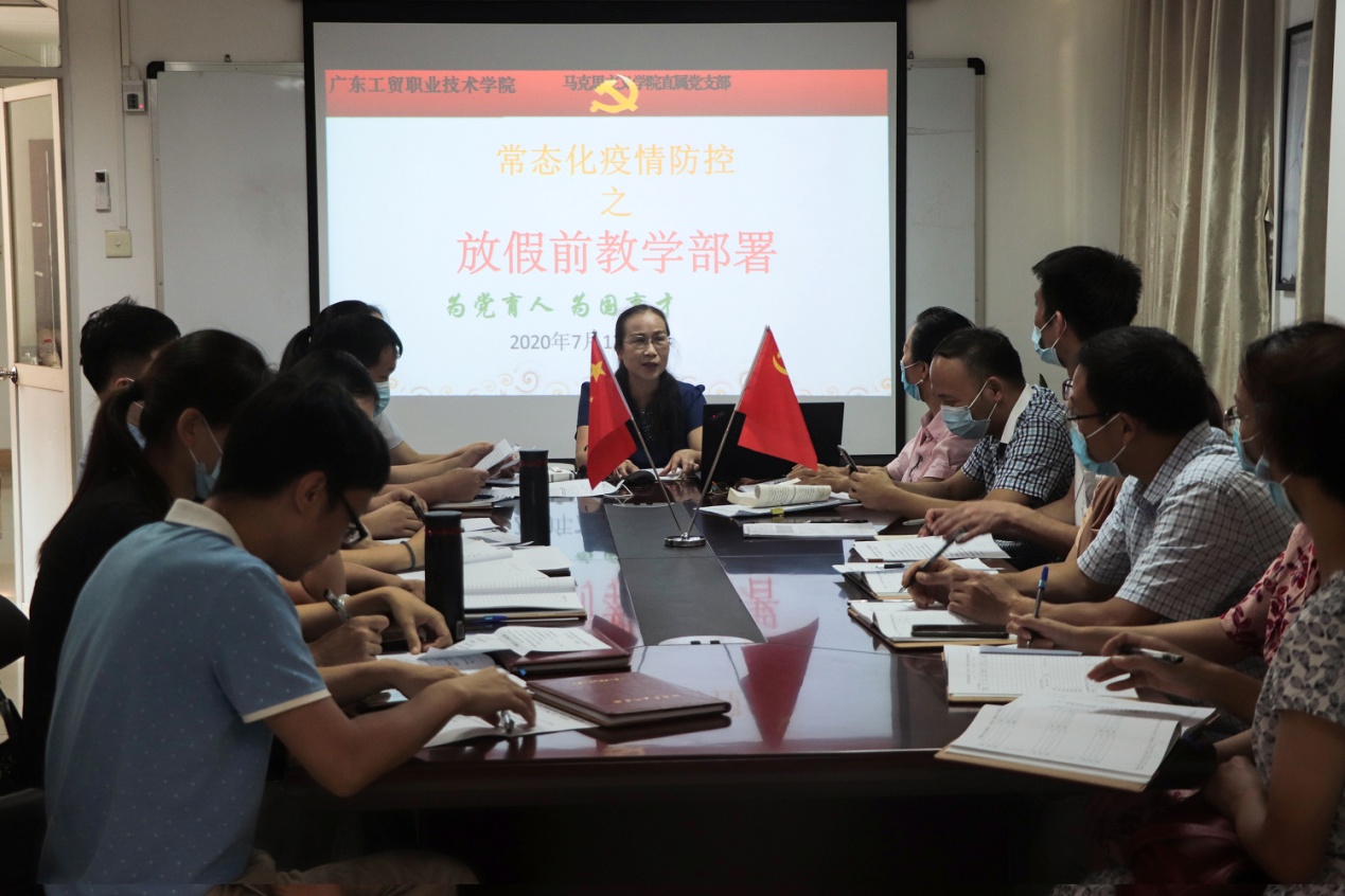 马克思主义学院直属党支部于7月14召开了常态化疫情防控党建“四个一”行动之组织生活会和放假前教学部署工作会,对本学期的工作进行总结、对下学期的工作进行部署,这是马克思主义学院落实常态化疫情防控工作的一次务实大会。