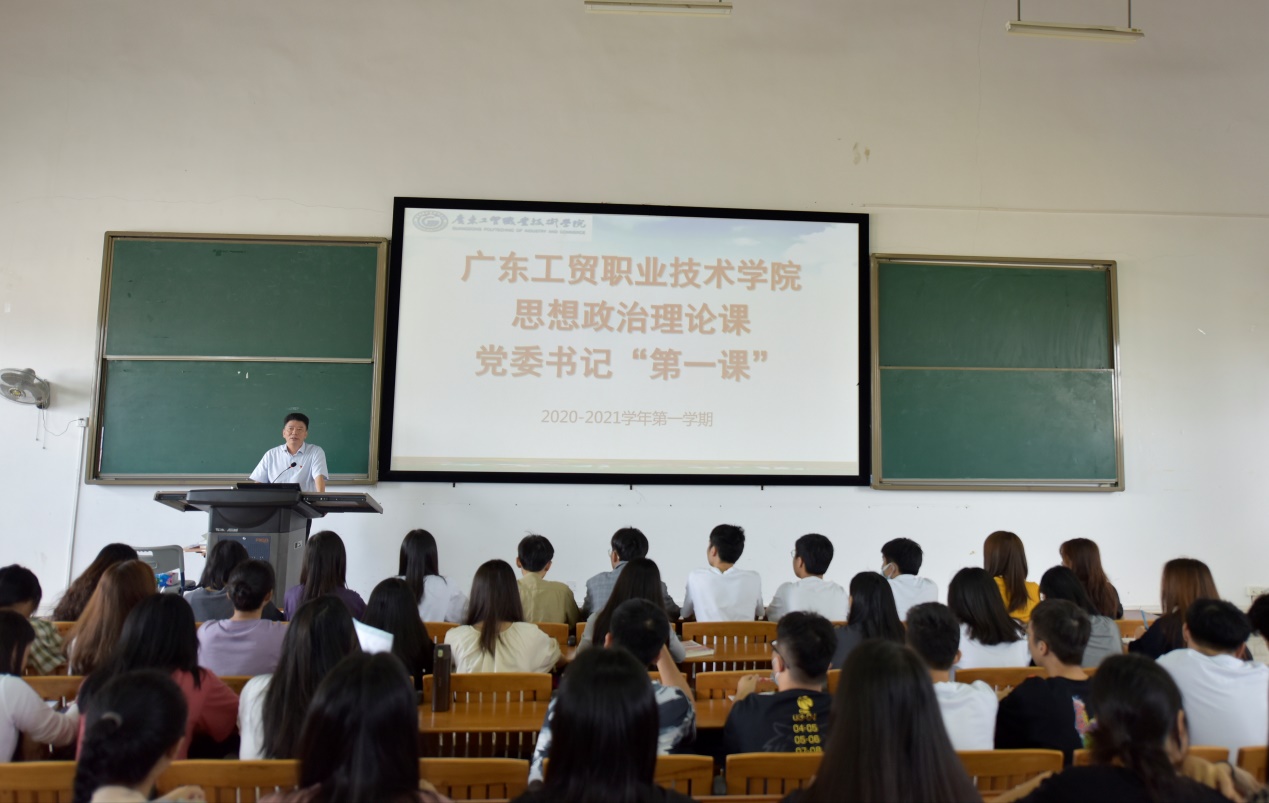 为了深入贯彻落实习近平总书记在学校思想政治理论课教师座谈会上的重要讲话精神,按照广东省教育厅关于做好2020年秋季学期高校党委书记、校长上第一堂思想政治理论课工作的通知要求,2020年10月28日上午,在白云校区明德楼2区306课室,我校党委书记汤才教授走上讲台,与学生讲授形势与政策课“第一课”。