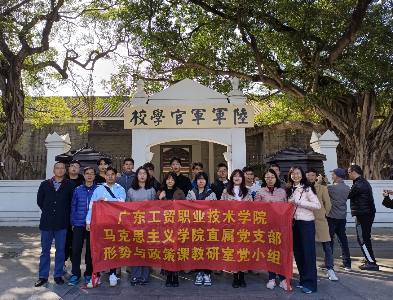 为贯彻落实习近平全国思想政治理论课教师座谈会精神,有效推动我校大学生社会实践活动的开展,学习和体验革命先烈们艰苦奋斗、不怕牺牲的革命精神,切实提升师生党员思想政治素质。12月5日马克思主义学院 “形势与政策”教研室(党小组)全体老师及部分学生代表前往广州市黄埔军校旧址纪念馆进行参观,开展了以“重温近代史,建功新时代”为主题的社会实践活动。
