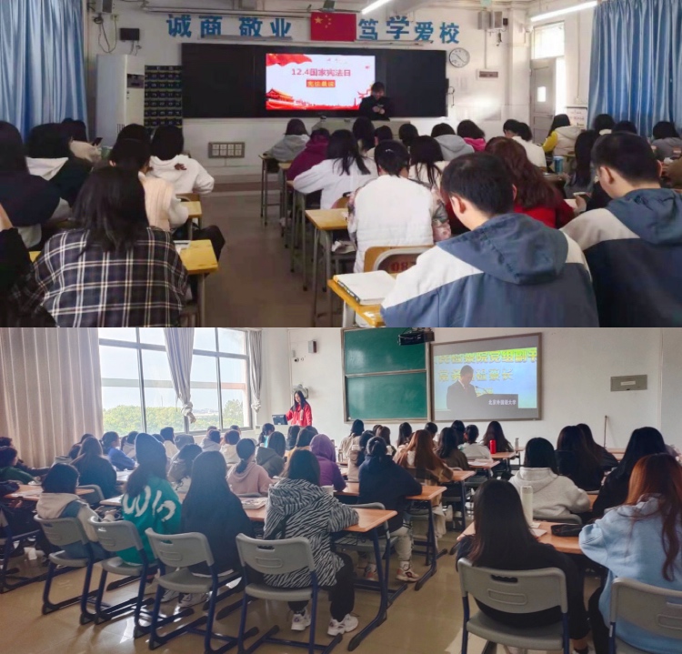 12月4日,马院教师在课前组织学生进行宪法晨读,朗读宪法部分章节,并重点学习了宪法总纲、公民的基本权利和义务等内容。同学们精神饱满,情绪激昂,大声跟随诵读,通过慷慨有力的声音传达自己对宪法的尊崇,大家在朗读的过程中也深入地学习了宪法。
