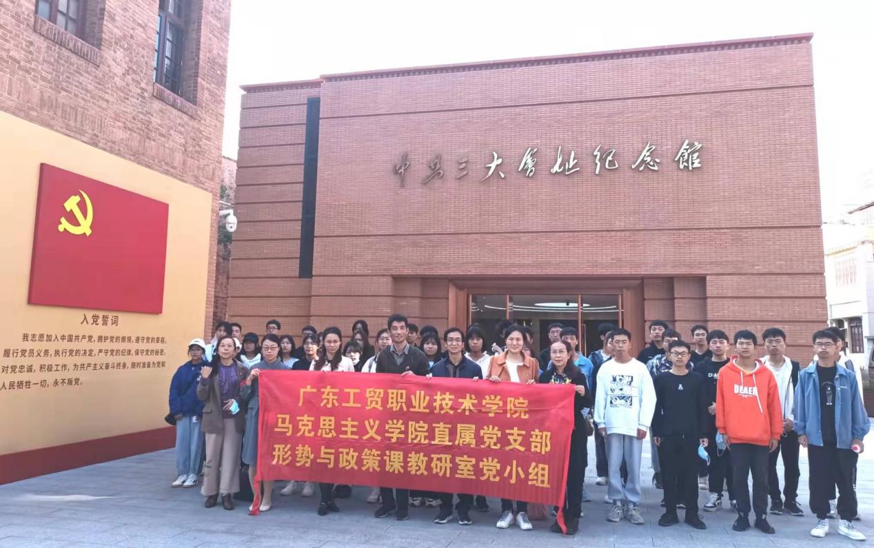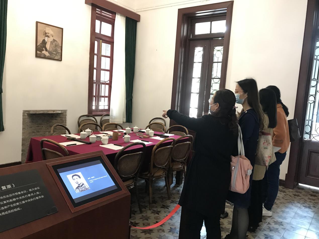 为庆祝中国共产党成立100周年,深入学习习近平总书记建党百年“七一”讲话精神和党的十九届六中全会精神,12月14日下午,在党支部书记李瑞清的带领下,马克思主义学院直属党支部全体支委、形势与政策课教研室党小组和学生代表,赴中共三大会址纪念馆和中共中央机关旧址“春园”开展主题党日和学生社会实践活动。