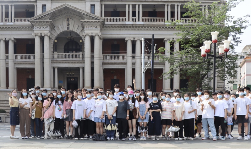 师生们随后参观沙面历史文化街区和沙基惨案纪念碑。从二十世纪五十年代至今,沙面这座“没有围墙的博物馆”近年来逐步走向修旧如旧、有机更新的轨道。如今,这里充满着文化和艺术魅力,已经成为岭南文化对话世界的会客厅。参观的学生们感慨道:“通过实地参观了解历史,我们增强了文化自信,今后会继承发扬前辈们敢为人先、开拓进取的创新精神,不断加强自我学习,肩负起新时代新青年的使命担当!”在珠江边的革命地标沙基惨案纪念碑前,学生们结合《中国共产党简史》课堂所学,对共产党早期领导的工人运动有了更深刻的认识。通过缅怀先烈反帝斗争的革命精神,增强了同学们的爱国情感和历史责任。驻足碑前,凝视“毋忘此日”四个大字,师生共同铭记中国共产党波澜壮阔的百年奋斗历史,感怀气象万千的伟大时代,憧憬浓墨重彩的崭新篇章。