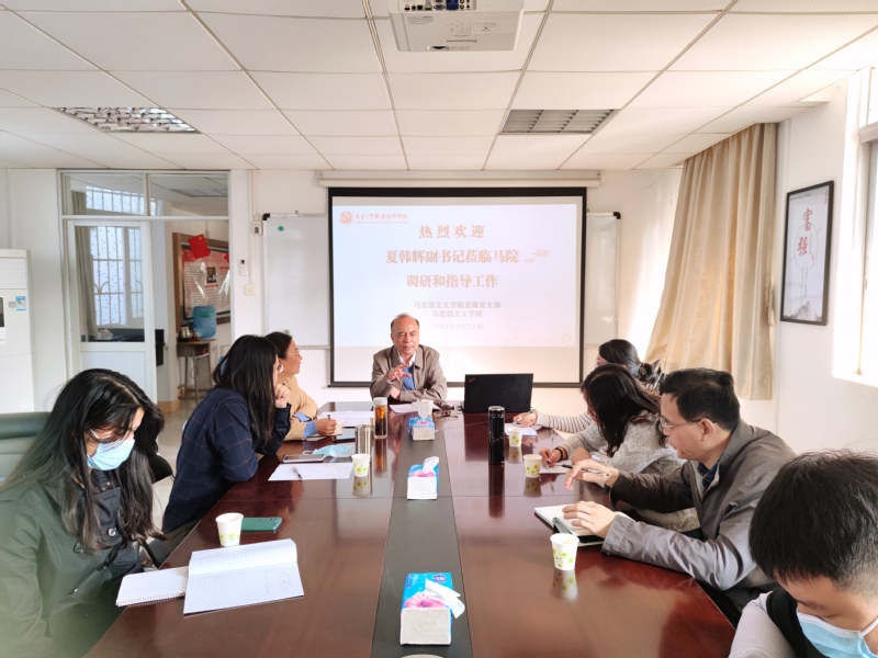 2月21号上午,新学期伊始学校党委副书记夏韩辉莅临马克思主义学院调研和指导思政课教学和党的二十大精神“三进”工作。马克思主义学院临时负责人宁晓菊主持会议,教研室主任毛玲、魏银立、张薇薇和部分无课的教师参加了会议。