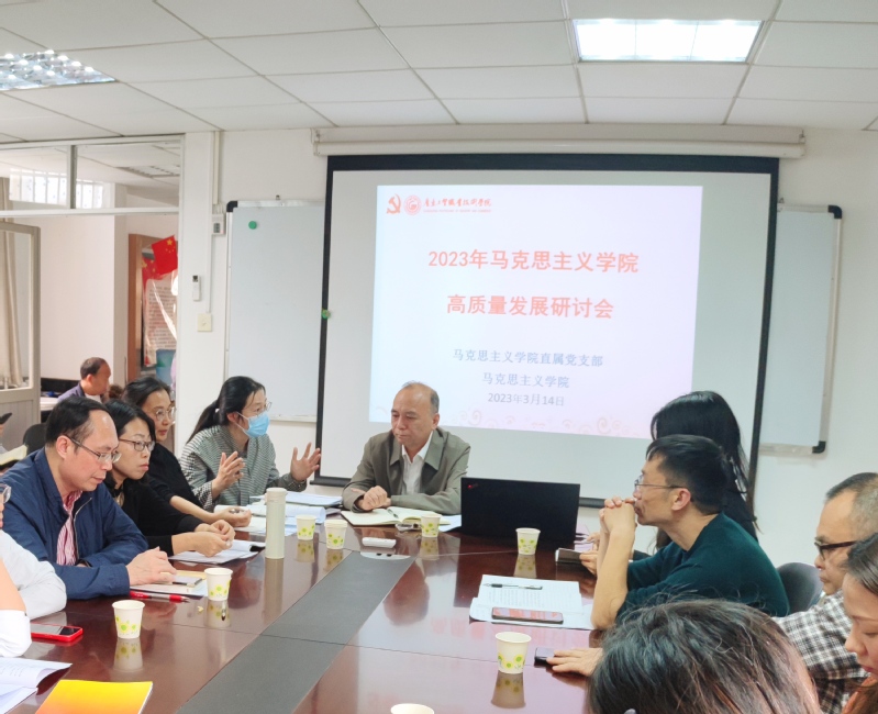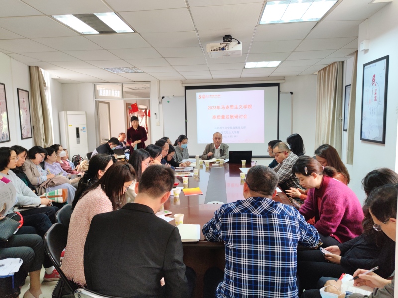 2023年3月14日下午,马克思主义学院召开2023年学院高质量发展研讨会,全面贯彻落实学校高质量发展大会精神,并开展大会第二阶段研讨活动。学校党委副书记夏韩辉、马克思主义学院临时负责人宁晓菊以及全体教师参加会议。