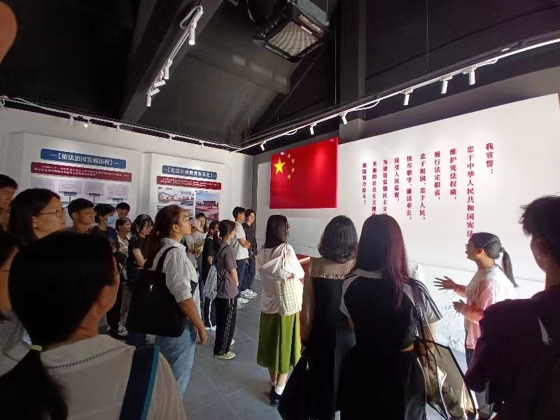 师生代表首先参观了西塘宪法教育展览馆。作为全国首个在乡村建设的宪法馆,该馆陈列着精心整理的文献资料、影像图片、漫画故事等,在工作人员的讲解下,师生们详细了解了我国宪法的发展历程和主要内容。工作人员重点讲解了与“三农”相关的宪法条文和相关实践,大家切实感受到宪法对于保障人民权益起到的根本性作用。乡村宪法馆既有时代性又有生活气息,营造了乡村崇法尚智的良好氛围。