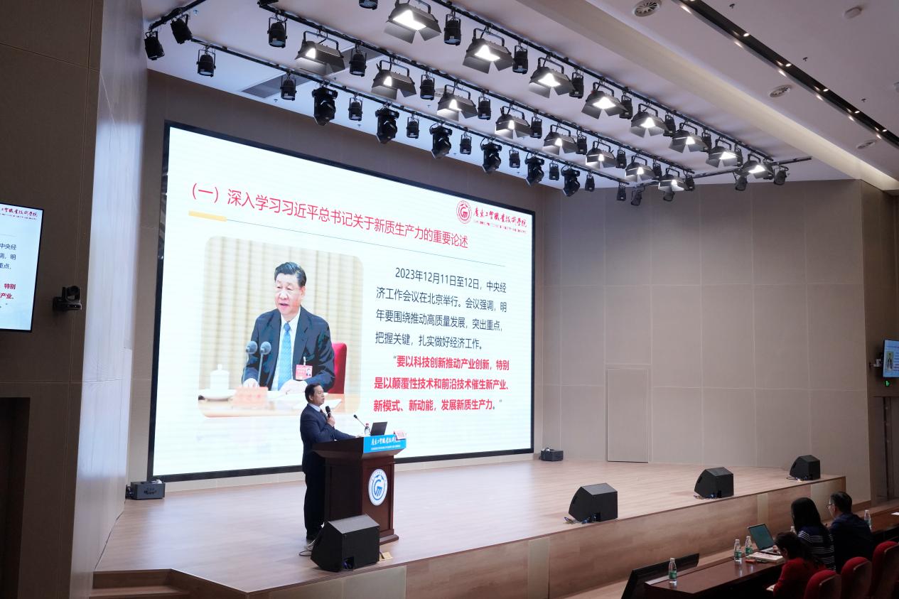 授课的第一部分何汉武带领大家学习了习近平总书记关于新质生产力的重要论述,重点阐释了新质生产力的内涵、表现以及在中国式现代化高质量发展中的战略意义,清晰展现了新质生产力的“原创性”和“颠覆性”。