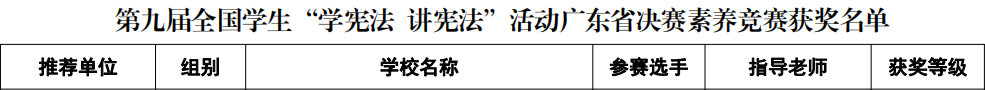 近日,由广东省教育厅主办的第九届全国学生“学宪法 讲宪法”活动广东省决赛在广东外语外贸大学圆满落幕。我校学生在本次比赛中表现优异,23级工业设计专业5班张佳茹同学在马克思主义学院贾云飞老师的指导下荣获演讲比赛三等奖,23级汽车技术服务与营销专业4班郑曼如同学在马克思主义学院文菲斐老师的指导下同样获得三等奖。