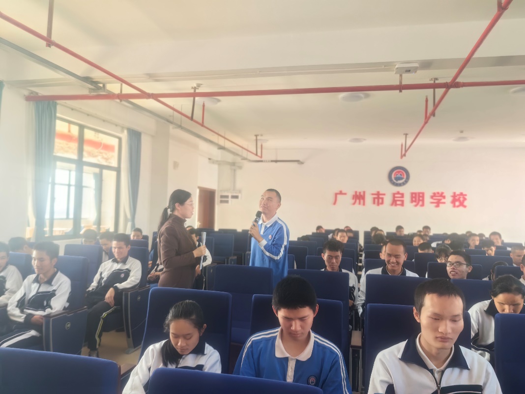 广州市启明学校是广州市教育局直属的公办特殊教育学校。根据学校情况,本次讲座专为100余名未成年特殊学生开设,讲座题为《宪法,守护少年的你》,由张薇薇老师主讲,毛玲老师协助。