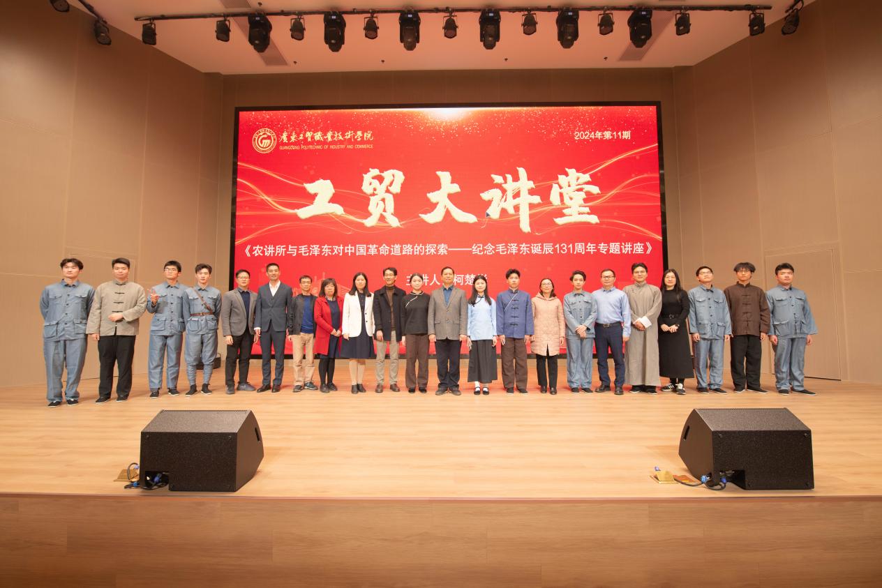 随着红色音乐舞台剧的精彩谢幕,2024年第11期“工贸大讲堂”也画上了圆满的句号。此次活动通过讲座与音乐舞台剧相结合的创新形式,为在场的领导、老师及同学们带来了一场思想的盛宴与视觉的享受。大家纷纷表示,广州作为近代中国革命策源地,其历史地位与贡献在此次活动中得到了深刻的展现。通过生动的讲解与演绎,大家不仅对中国革命历史有了更加全面而深刻的理解,更被其中蕴含的爱国情怀与奋斗精神所感染。此次大讲堂坚定了大家为实现中华民族伟大复兴的中国梦而努力奋斗的信念,进一步激发了大家的爱国热情与责任感。