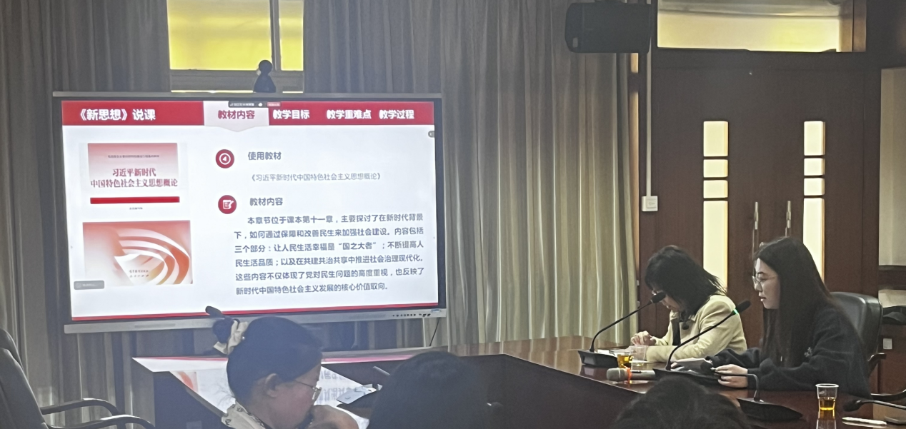习概论教研室赵聪老师对《习近平新时代中国特色社会主义思想概论》进行总体说课,分别从课程定位与课程目标、教学内容与教学方法、教学资源与考核评价、教学设计与教学过程、教学创新与反思改进五个方面进行了介绍,指出本课程在创新实践教学、增强学情分析、盘活教学资源、数字赋能教学等方面还需要进一步完善和探索。在此次和广东汕头幼儿师范高等专科学校习概教研室的线上集体备课会中,希望相互学习和相互启发,为学生带来更优质、更具深度的思政课堂。