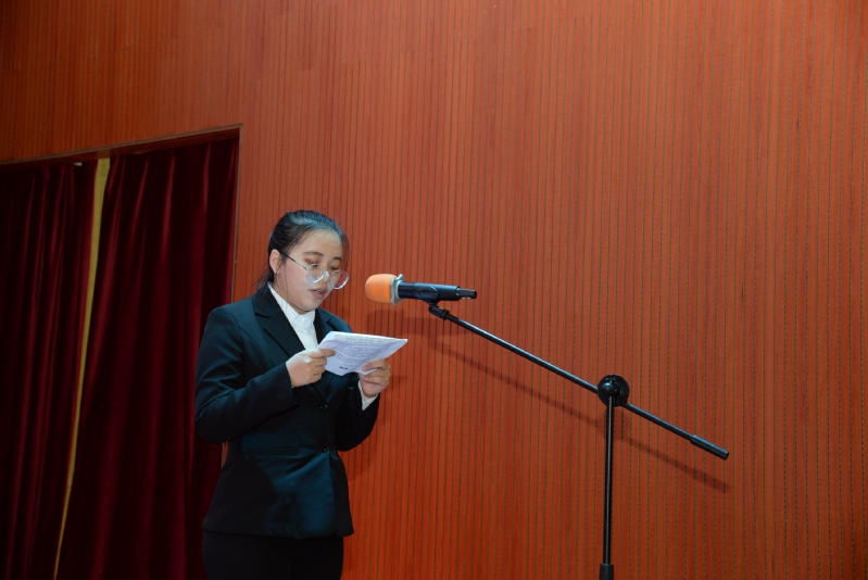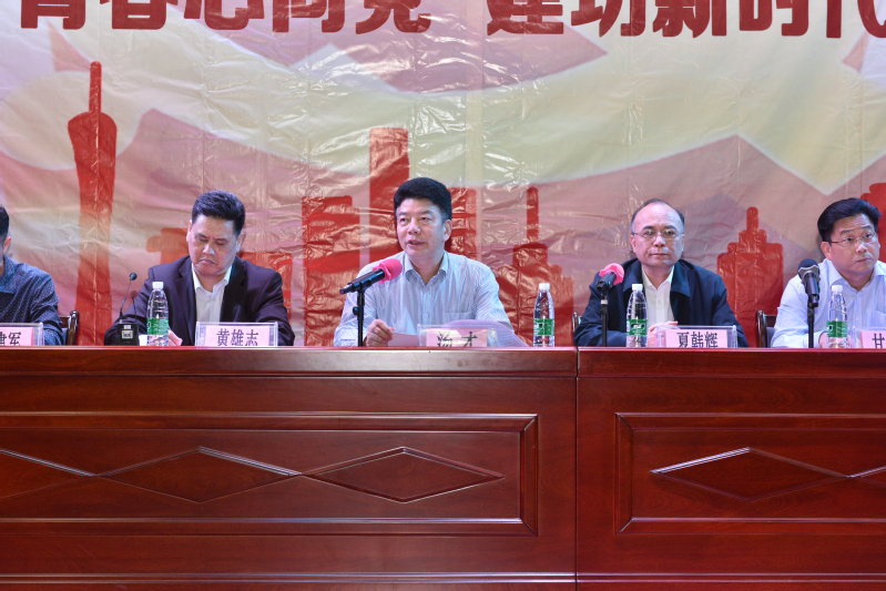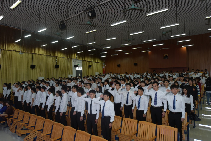团委副书记唐建树宣读《关于批准2017地理信息2班蔡海阳等35名同学入中国共产主义青年团的决定》,并由2017级营销2班石桂阳同学领誓并带领新入团同学庄严宣誓。