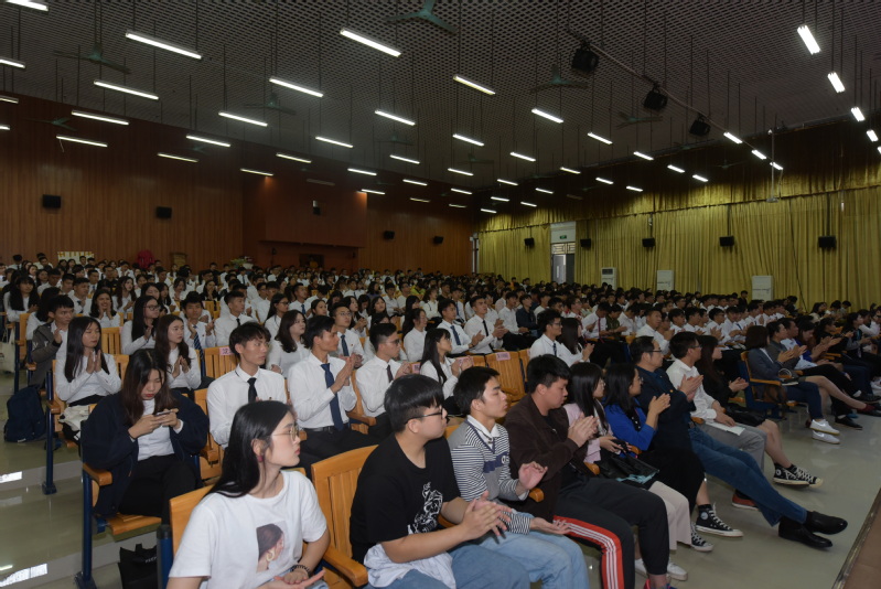 广东省优秀团员经济贸易系2016电商3班袁雨同学作为学生代表发言,号召同学们要继续发扬新时代中国青年五四精神,以实现中华民族伟大复兴为己任,不辜负党的期望、人民期待、民族重托,不辜负这个伟大的时代。