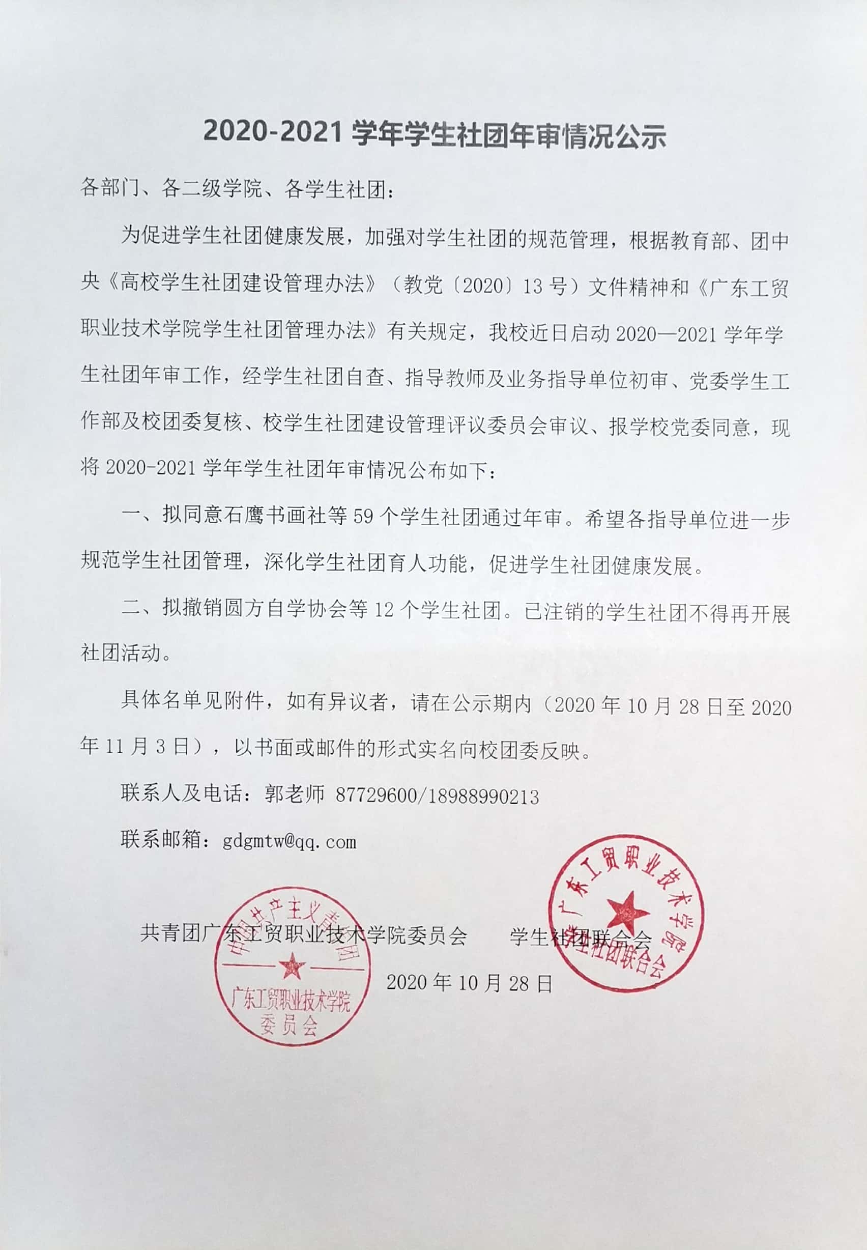 附件:太阳集团城官网14072020-2021年度学生社团年审情况