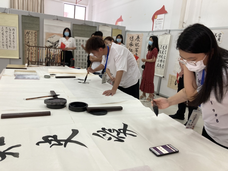 参展师生以书法祝福伟大的中国共产党100周岁生日快乐!