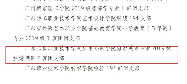 19旅游英语2班荣获“广东省五四红旗团支部”称号