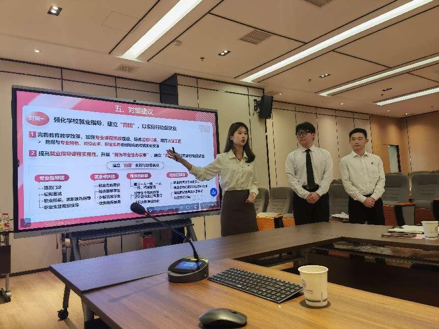 会议中,2023年省级“攀登计划”立项暨2024年“挑战杯”培育团队也简要汇报了项目研究进展,并表示将直面挑战、不惧艰难、勇于破题,产出更具创新的发明创造、更具突破的创业规划。
