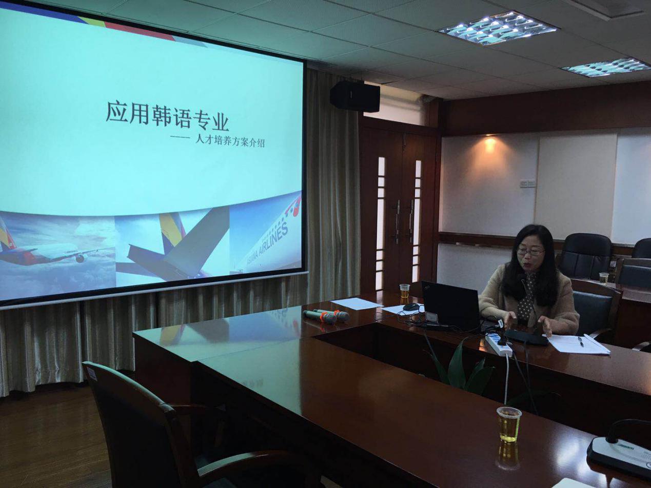 院长彭枚芳首先致欢迎辞,期望各位专家学者为外语学院人才培养方案“把脉问诊”,多提宝贵意见和建议。随后,商务英语教研室主任肖铁蕾、旅游英语金牌讲师罗春科、商务日语教研室主任王艳、应用韩语专业带头人梁艳华等从人才培养目标定位和规格、人才培养模式、课程体系、专业实践环节、人才培养方案实施保障等几大方面汇报2019级人才培养方案情况。