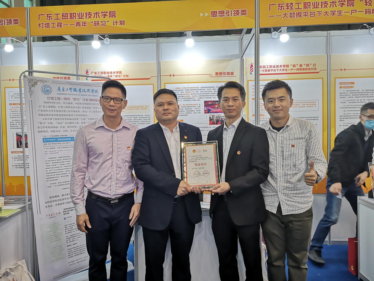 我校应用外语学院和团委联办的“灯塔工程——青年‘研习’计划”获评为首批“灯塔工程”广东大学生思想引领精品项目,通过“研习所、之江社”开展“四个一”,学习一系列原著和讲话精神,打造一个“研习”大讲堂,开展一系列青年大学生思想引领行动,占领一个网络宣传主阵地,以点带面、以面成形、以形成立方体,构建全员、全程、全方位育人“大思政”立体式链条。2020年9月14日,学习强国、中国教育新闻网分别刊登文章《广东工贸职院:灯塔工程照亮育人路》报道我校“灯塔工程”广东青年大学生思想引领工作开展成效,指出太阳集团城官网1407应用外语学院思想政治教育工作的新模式。
