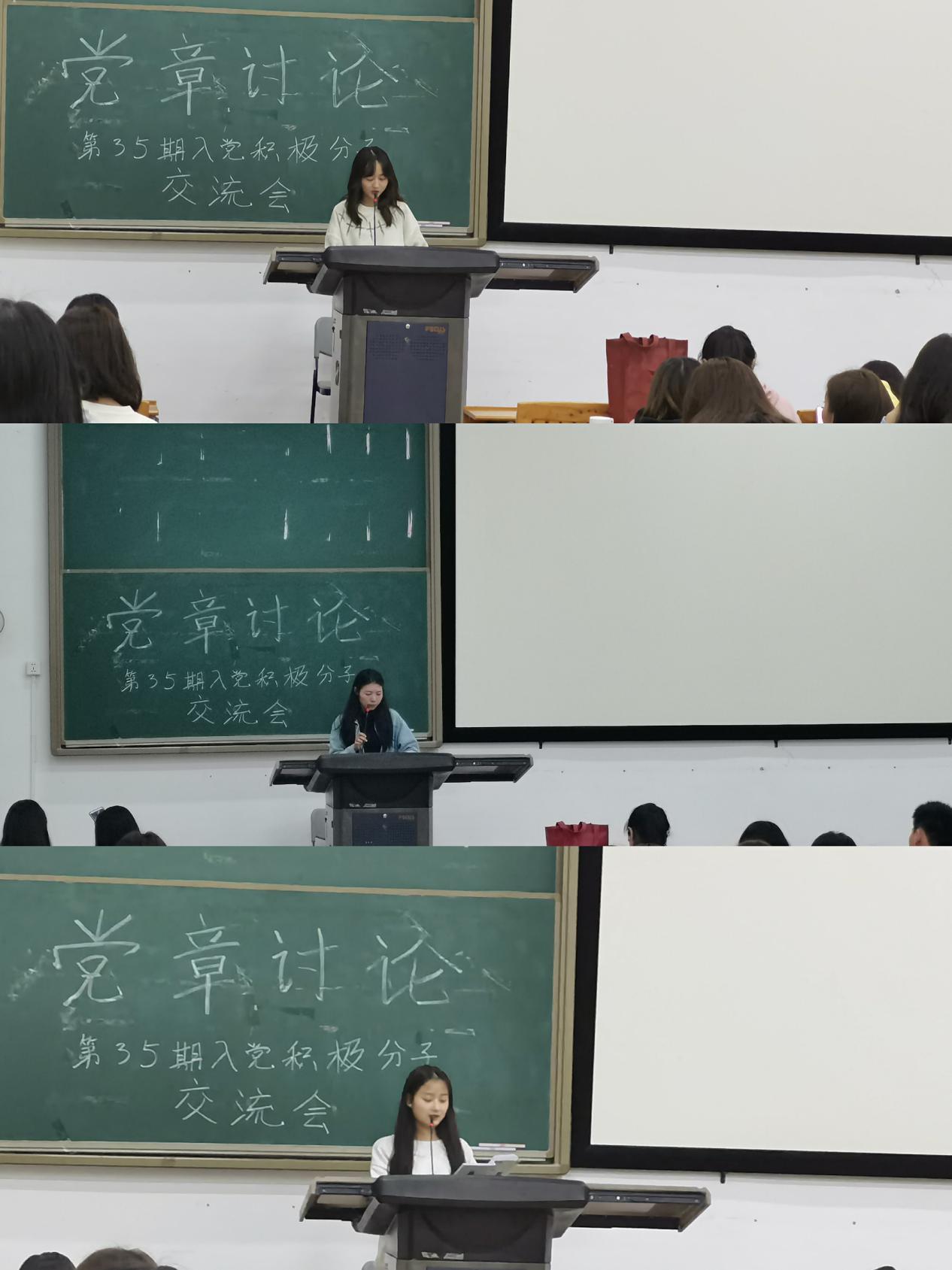 为深入学习《中国共产党章程》,各学院党总支组织第35期入党积极分子开展党章学习交流活动,学员针对党课所授的内容并结合近期自学的党章、党规等内容进行了交流讨论,各组分别派出一位代表对活动展开情况、收获及感悟做了总结汇报。