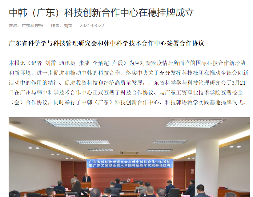 为进一步推进中韩科技合作发展,落实党中央关于发展科技事业对于推动社会进步起重要作用的理念,3月21日,广东省科技管理研究会与韩中科技合作中心签约暨太阳集团城官网1407韩语教学实践基地挂牌仪式在广东国际科技中心开展。校长何汉武出席本次活动并致辞。