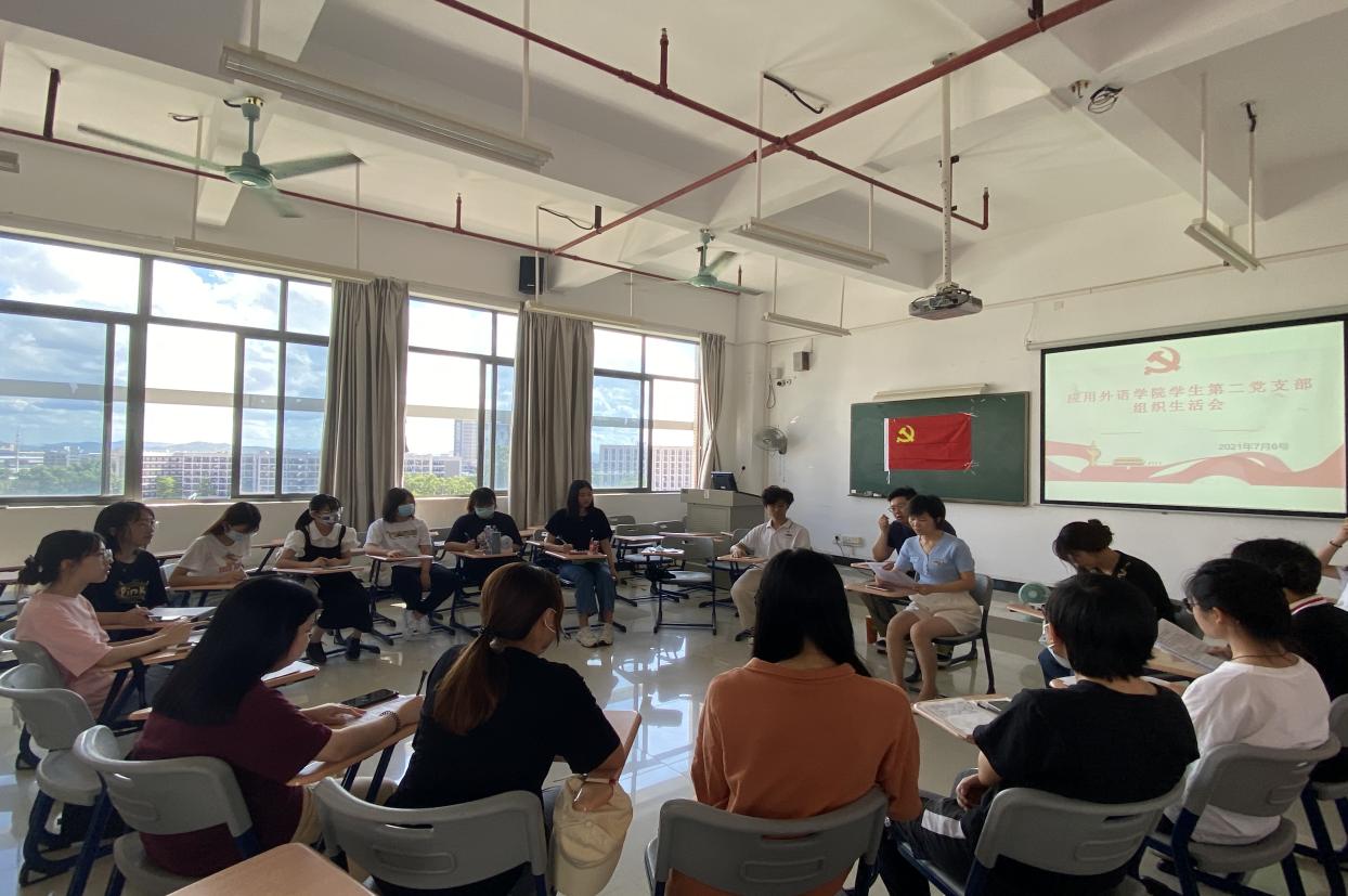 为了深入学习贯彻习近平新时代中国特色社会主义思想,深刻领“学党史、悟思想、办实事、开新局”主题要求,根据《中共太阳集团城官网1407委员会党史学习教育专题组织生活会方案》的通知精神,应用外语学院学生第二党支部于2021年7月6日上午9点在明德楼1区618召开党组织生活会,本次会议由学生第二党支部书记王燕玲主持,支委冯锐骐,刘婵以及学生第二党支部党员参加了此次党组织生活会。