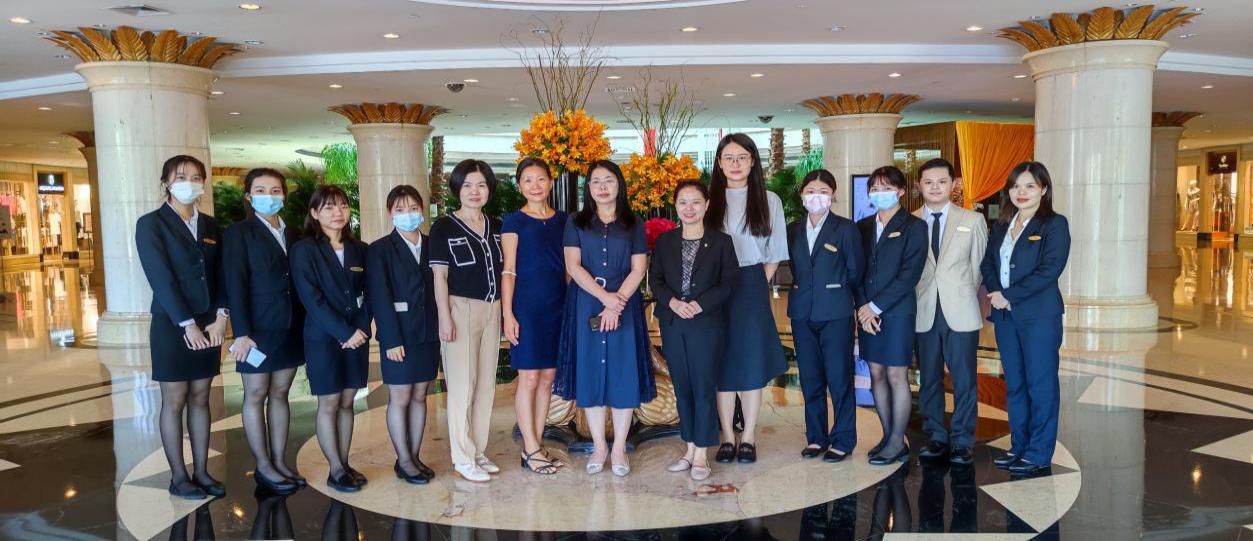 7月21日,彭枚芳院长带教师队伍于到达酒店交流深度合作事宜,并看望19级旅游英语1班现代学徒制实习学生。召集学生开展座谈会,询问学生实习情况及遇到的困难,并给出一些可行性建议。