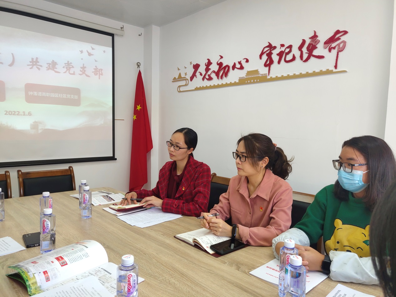 座谈会上,冯晋碧对外语学院一行人的到来表示热烈欢迎,并向与会人员介绍了高职院社区党支部的基本情况。她表示:高职园区的服务对象是高职院校学生群体,通过此次共建活动,期望能进一步促进外语学院与高职园区人才、创新、资源的共同发展,促进创新要素的有效聚集和优化配置,打造先进基层党组织品牌,实现推动发展、服务群众、促进和谐的目标要求。