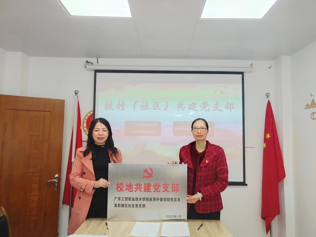 1月6日上午,应用外语学院党总支与钟落潭高职园社区党支部在社区会议室开展校村(社区)共建主题座谈会暨挂牌仪式。高职园社区党支部书记冯晋碧、副书记曾卉静,外语学院党总支副书记、院长彭枚芳,党总支副书记罗春科及双方党员代表参加本次活动,就如何开展党支部共建活动进行了深入交流。