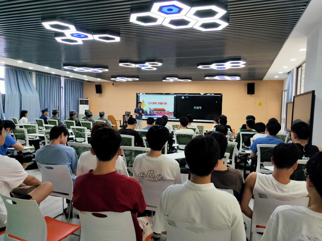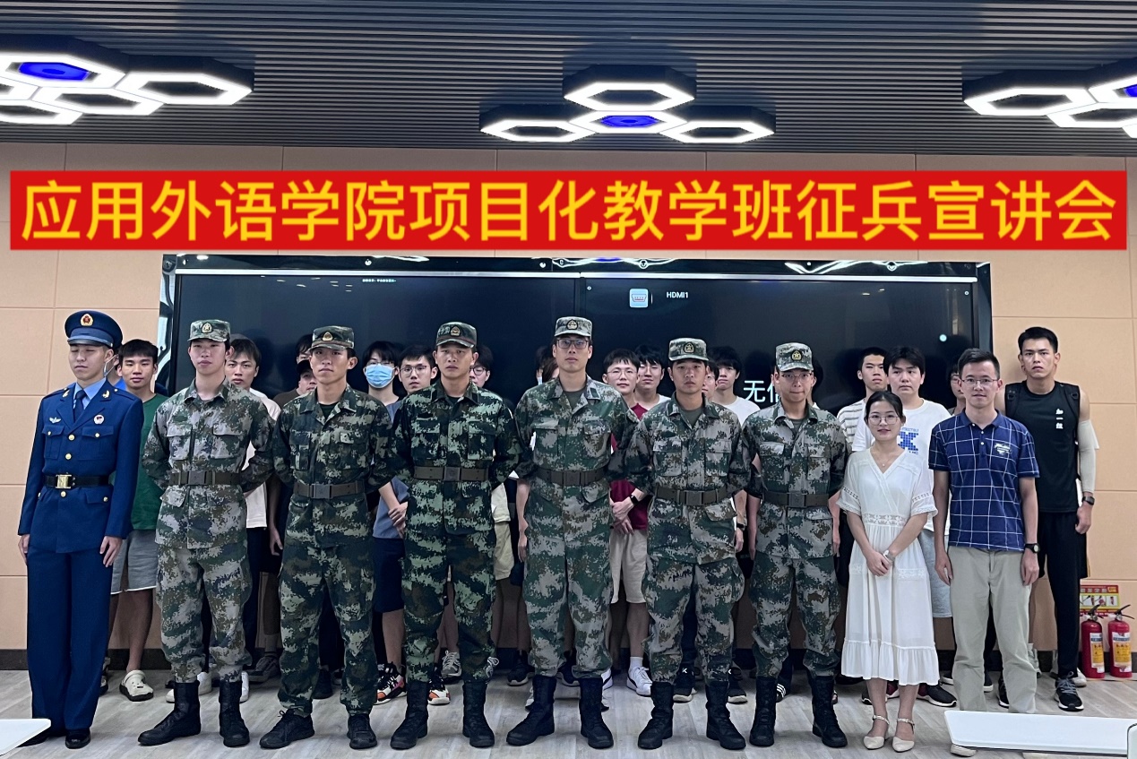 为推进新时代强军事业,充分调动学生报名应征入伍的积极性,强化学生服兵役的责任感和参军保卫祖国的意识。6月30日下午,应用外语学院于白云校区行知楼604召开项目化教学班征兵宣讲会,应用外语学院副院长邓国栋、辅导员、军协退伍军人以及2020级项目化教学班全体男生参会。