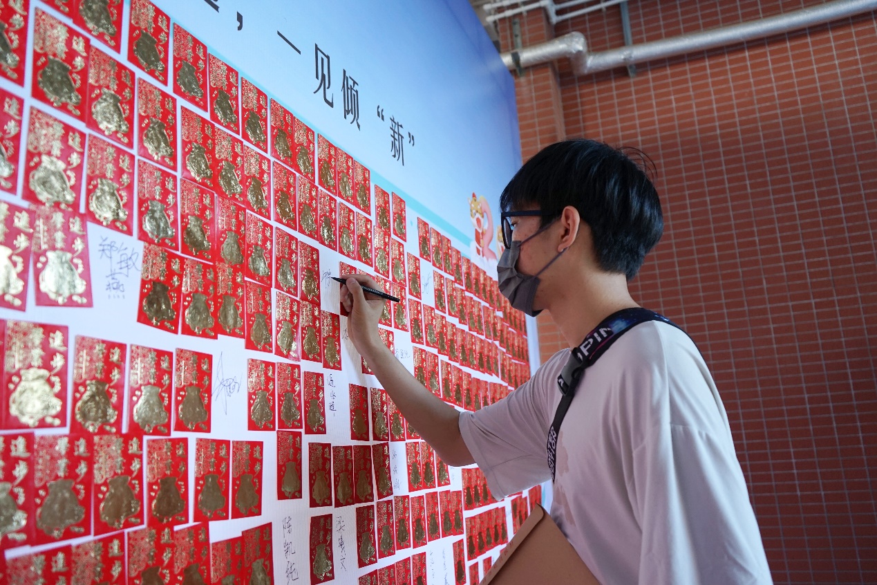“外”在我心,“语”你相遇,一见倾“新。”为了庆祝与新生的第一次相遇,外语学院为新同学准备了一面盲盒“墙”的见面礼。盲盒中包含外语学院专属口罩,金秋月饼、外语特制钥匙扣、奶茶优惠券等惊喜奖品。凡是外语学院2022级新生均可凭录取通知书到报到大本营处拆盲盒,签署新生报到墙,领取属于外语的第一份惊喜。新同学对此纷纷感叹:“这盲盒拆出的不仅是礼品,也是老师和学长学姐们的贴心,我们对工贸未来三年的学习生活充满憧憬与希望。”