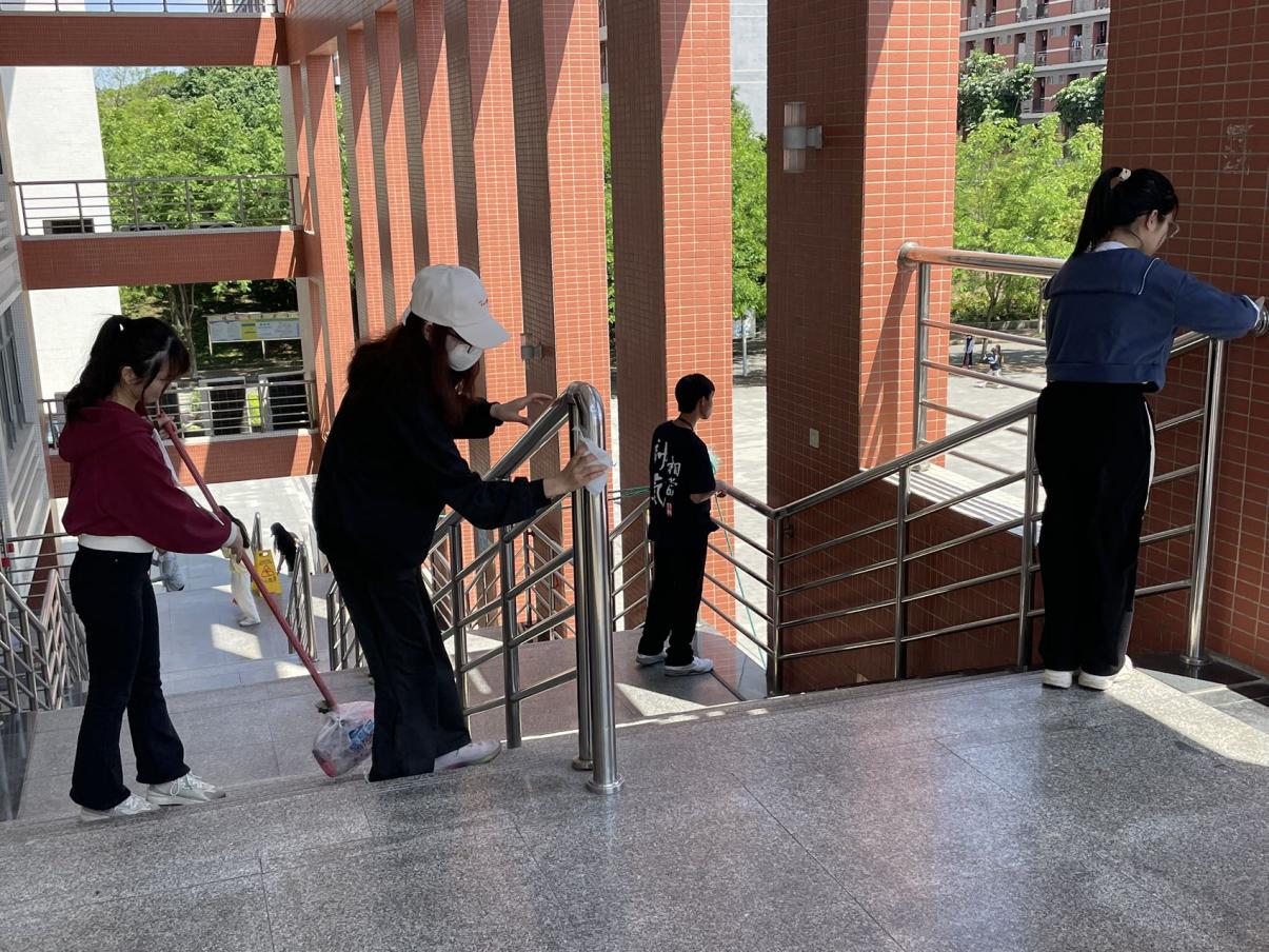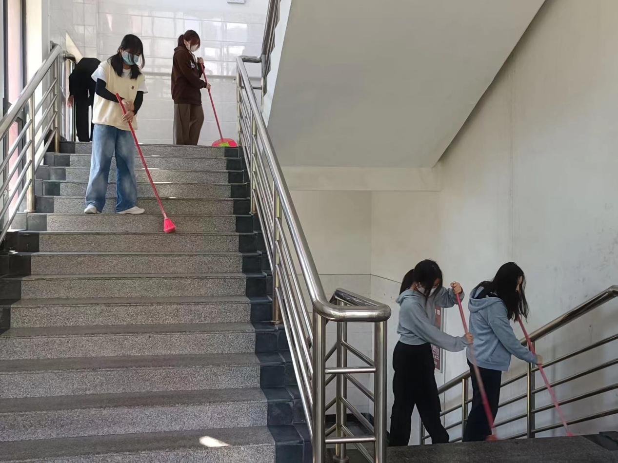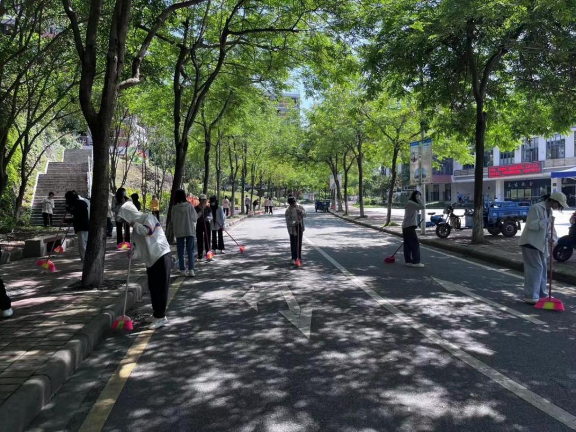 积极分子打扫子衿广场和食堂前校道