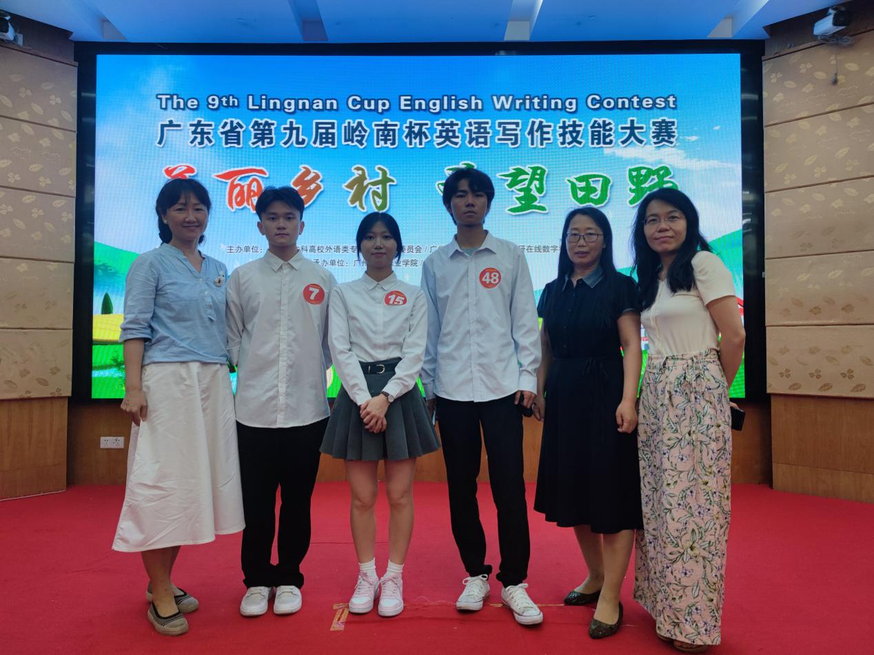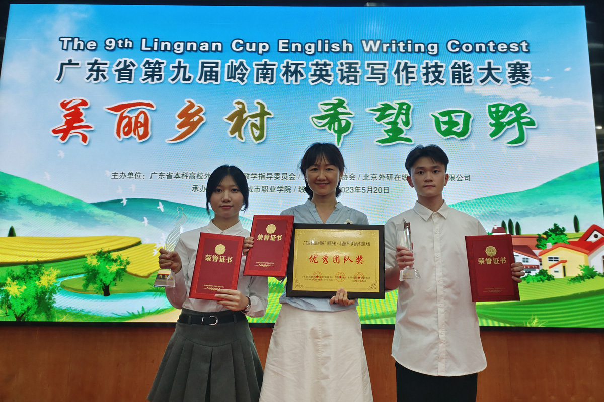 2023年5月20日,广东省本科高校外语类专业教学指导委员会、广州外国语协会与外研在线联合举办的第九届岭南杯“美丽乡村,希望田野”英语写作技能大赛(决赛)在广州城市职业学院成功举办。95名选手来自全省多所高职院校,竞争激烈。我校应用外语学院英语系8位英语教师指导的参赛选手凭借出色的专业技能和职场综合素养脱颖而出,荣获特等奖1项、二等奖2项、三等奖5项,金笔奖1项,8位指导老师获“优秀指导老师奖”,我校代表队获得“优秀团队奖”。详见下表: