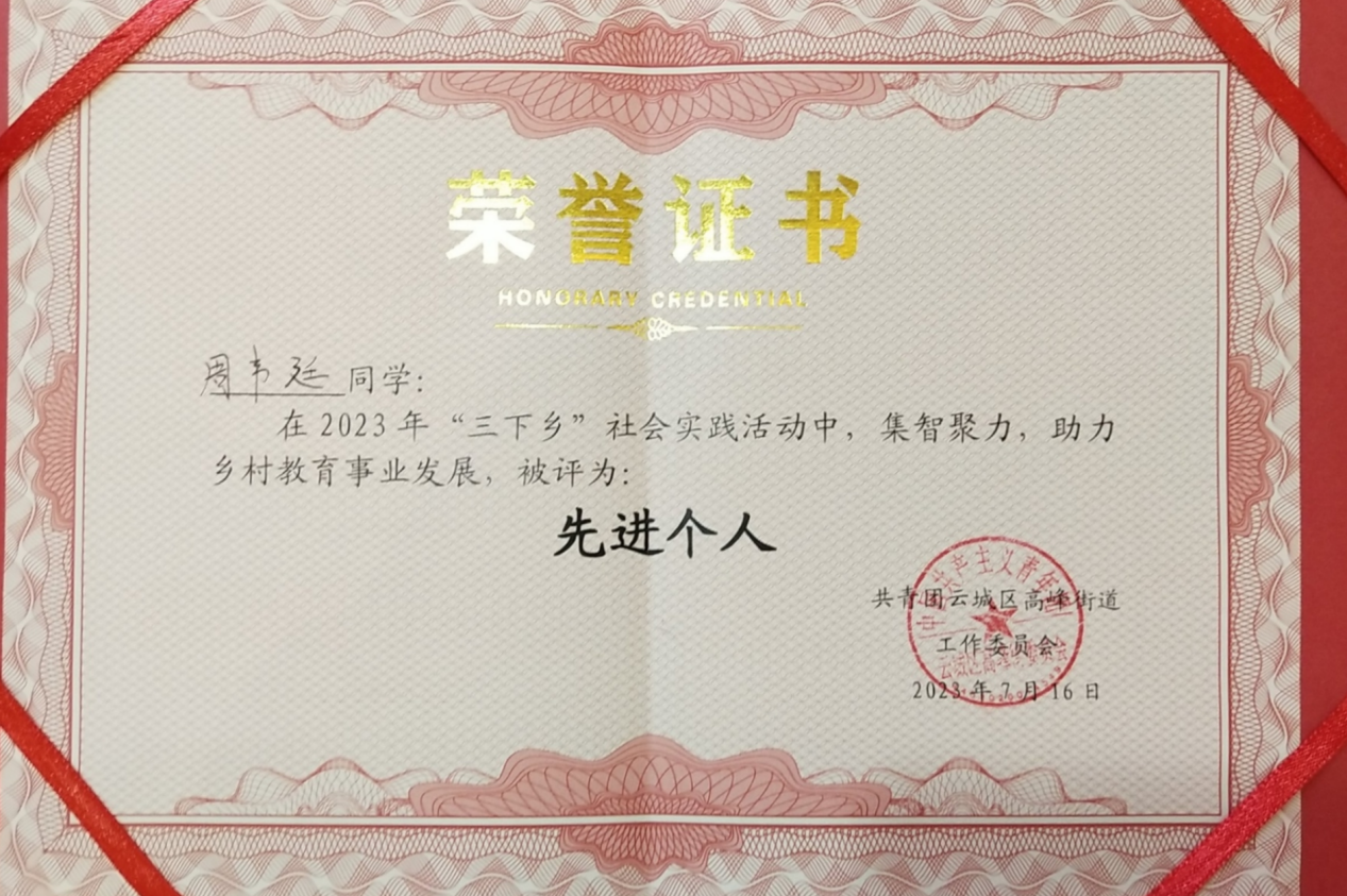 日前,由共青团云浮市委员等单位评选的2023年“云扶·益起来”公益夏令营优秀集体和优秀个人评审结果揭晓,我校应用外语学院学生党支部在云浮市云城区高峰街道开展的大降坪公益夏令营,获评云浮市“优秀夏令营”荣誉称号,应用外语学院学生党员周韦廷获评云浮市“优秀大学生志愿者”荣誉称号。