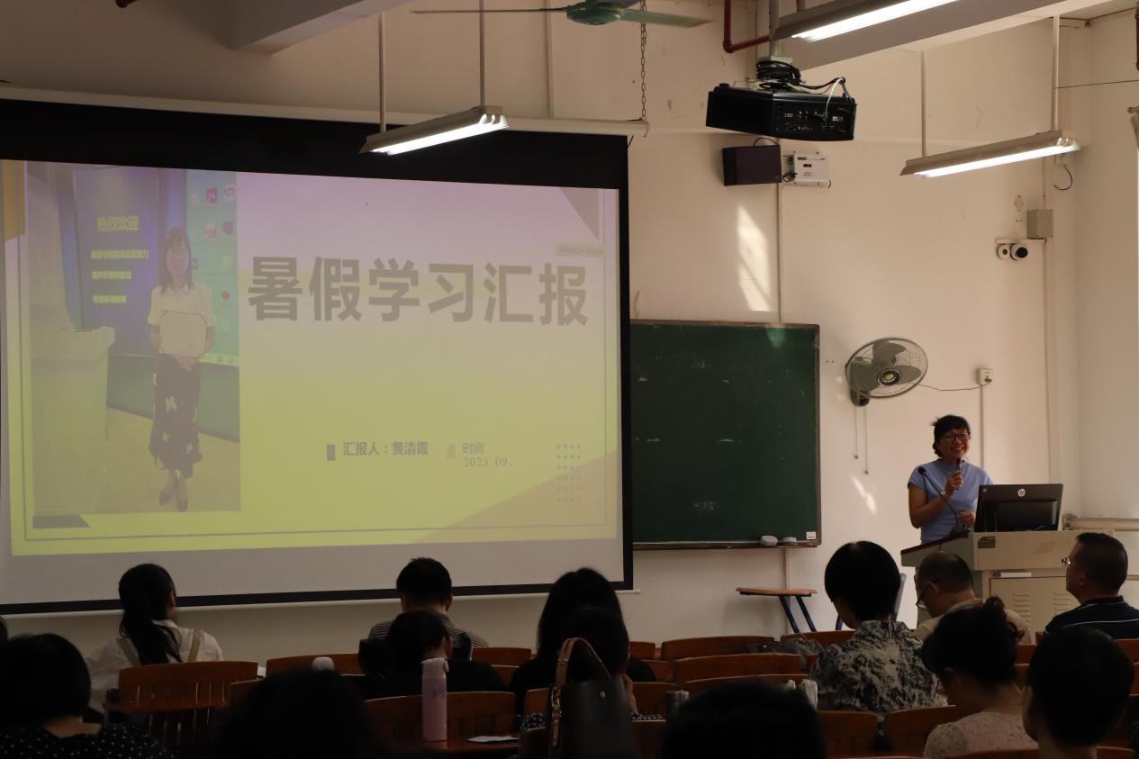 会上,邓国栋就教学日常管理工作强调了具体安排和要求,确保学院期初教学工作的正常有序进行。他提出,要牢牢抓住教学质量是学校发展的“生命线”,牢固树立评价导向的教学发展观。学院学工办主任林耀佳就学生日常管理专项工作、特长奖申报工作及教师值班安排等作了详细安排,进一步提出辅导员队伍强化思政引领的主责主业,勉励党员教师增强主人翁意识,弘扬奋斗者精神,践行建设者使命。随后,优秀教师代表梁艳华、尹姣、黄清霞对暑期培训作学习体会分享。