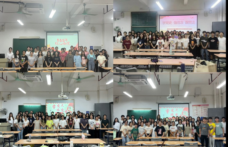 推动党史学习教育常态化长效化,是坚定理想信念、推进伟大事业的必然要求。结合共青团中央近日印发的《关于面向广大团员和青年开展学习贯彻习近平新时代中国特色社会主义思想主题教育的通知》,被聘为学校第三期“学生党史宣讲团”成员、应用外语学院学生第一党支部10名学生党员——彭美华、郑涛、孙依琳、杨潇婷、詹淇淇、陈雅洁、苏泳诗、黄娃、黎芯榆、黄楠于9月深入2023级商务英语专业10个新生班级团支部分别开展党史宣讲暨入党动员工作,面向广大团员和青年开展学习贯彻习近平新时代中国特色社会主义思想主题教育。