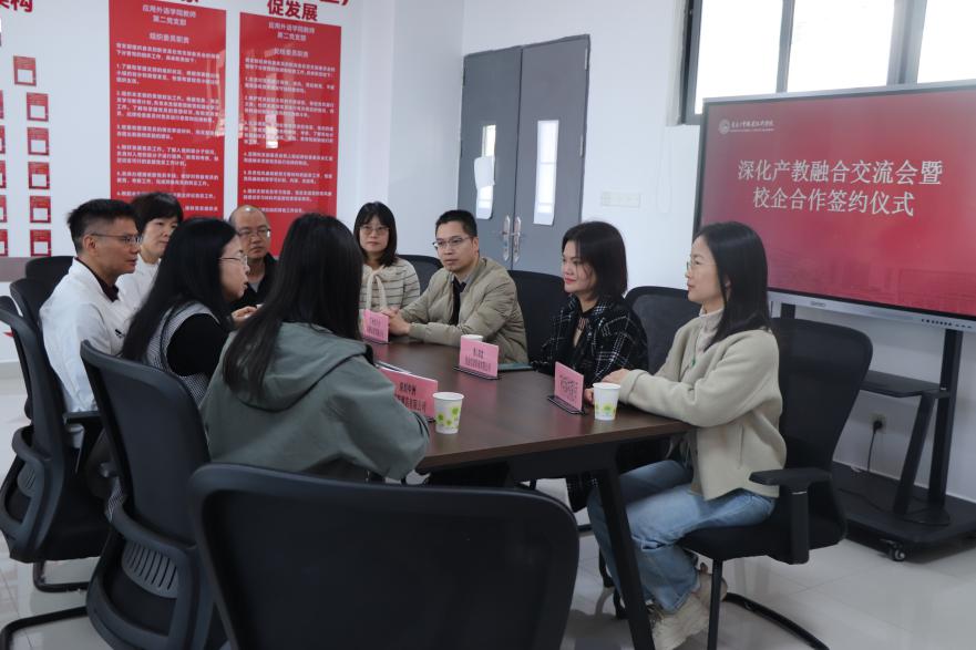 为深入贯彻习近平总书记关于高校毕业生就业工作的重要指示批示精神,有效驱动校企之间的互联互通、信息共享与业务协同,助力我院2025届毕业生高质量充分就业。11月29日上午,应用外语学院在行知楼611举行了深化产教融合交流会暨校企合作签约仪式。本次交流会参加企业有5家,提供岗位100余个,应用外语学院党总支书记罗春科,院长彭枚芳,副院长胡红玲,出席本次交流会。会议由彭枚芳主持。