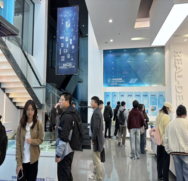 随后,师生一行坐车前往广东瑞德智能科技股份有限公司参观。公司人事部覃经理带领同学们参观公司产品展示厅和大会议厅,了解公司产业方向、观看公司宣传视频,介绍公司岗位和晋升渠道和福利待遇。最后带领大家参观员工宿舍区,让同学们亲身体验员工生活。