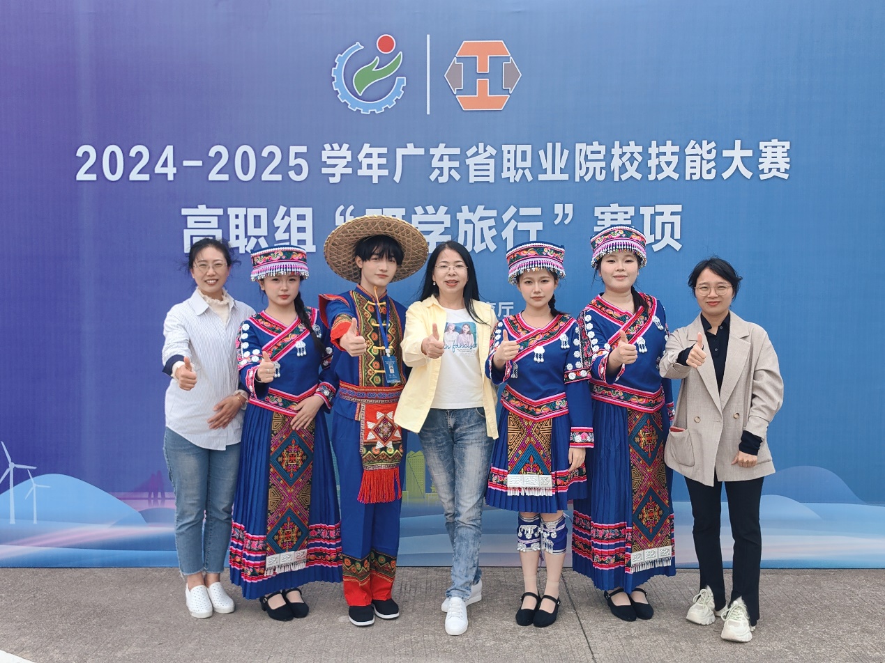 2025年3月14-16日,2024-2025学年广东省职业院校技能大赛“研学旅行”赛项在河源职业技术学院举行,此次大赛吸引了全省61支队伍参赛。由应用外语学院彭枚芳院长担任领队,徐秀玉老师、朱雁青老师指导的4人学生团队:23旅英4班廖怡倩、罗铭、嵇灵和赖舒婷,在全省61支参赛队伍中脱颖而出,以总分排名第4的优异成绩稳居前列,获得一等奖。此次成绩的取得,是我校在旅游大类职业院校技能大赛的重大突破。