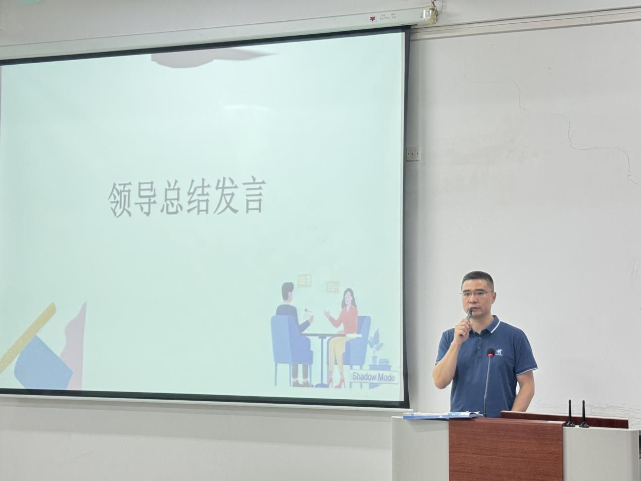 郑楚生对本次活动进行活动总结,他在发言中对双语简历提升坊的成功举办给予高度肯定,他指出,此次大赛不仅是对同学们双语能力与简历制作水平的检验,更是学院落实“以赛促学、以赛促教、以赛促创”教育理念的生动实践。本次大赛为同学们提供了锤炼专业技能的宝贵机会。同时他也对现场老师对选手们的专业指导进行了肯定。