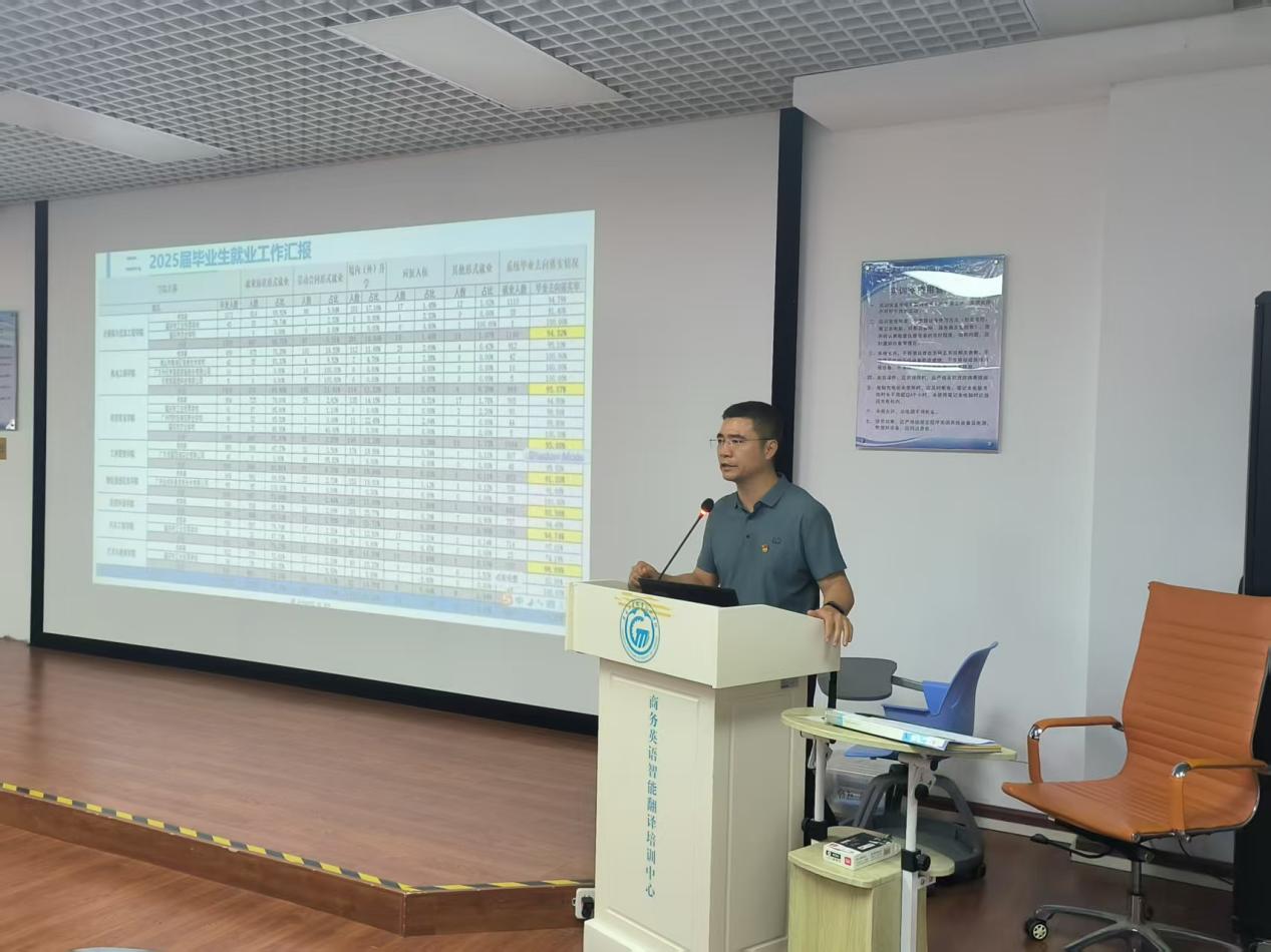 党总支副书记郑楚生汇报了“百千万工程”突击队成果及2025届毕业生就业工作情况,提出深化“访企拓岗”行动、构建就业服务“一盘棋”格局。针对开学初工作,他要求重点做好学生安全管理、两热疫情防控及2025级新生入学筹备。