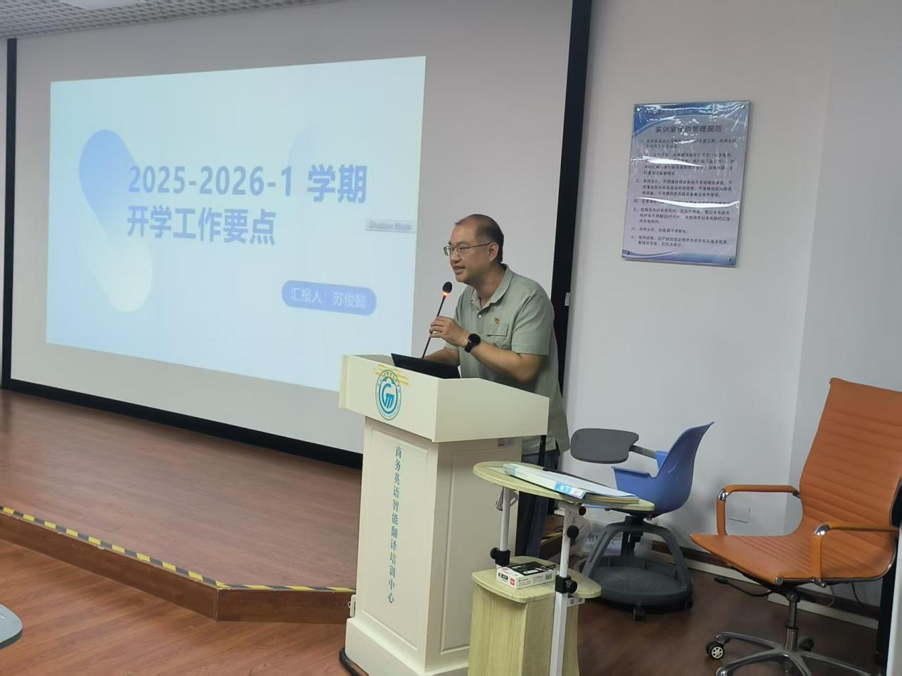 苏俊懿副院长部署2025-2026-1学期开学工作要点,包括配合学校推进实训室管理与建设,深化校企合作以拓展企业资源,同时加强大学英语四级考试辅导等。
