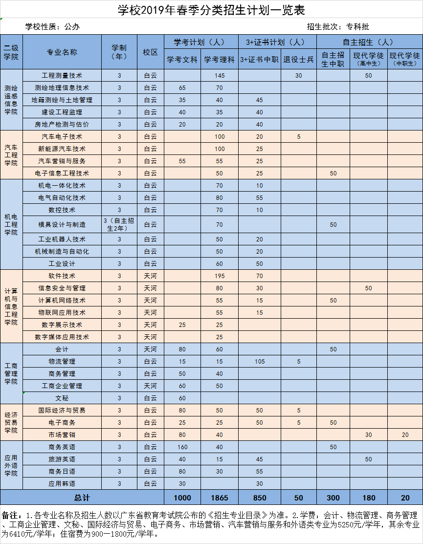 太阳集团城官网14072019年春季分类招生计划一览表