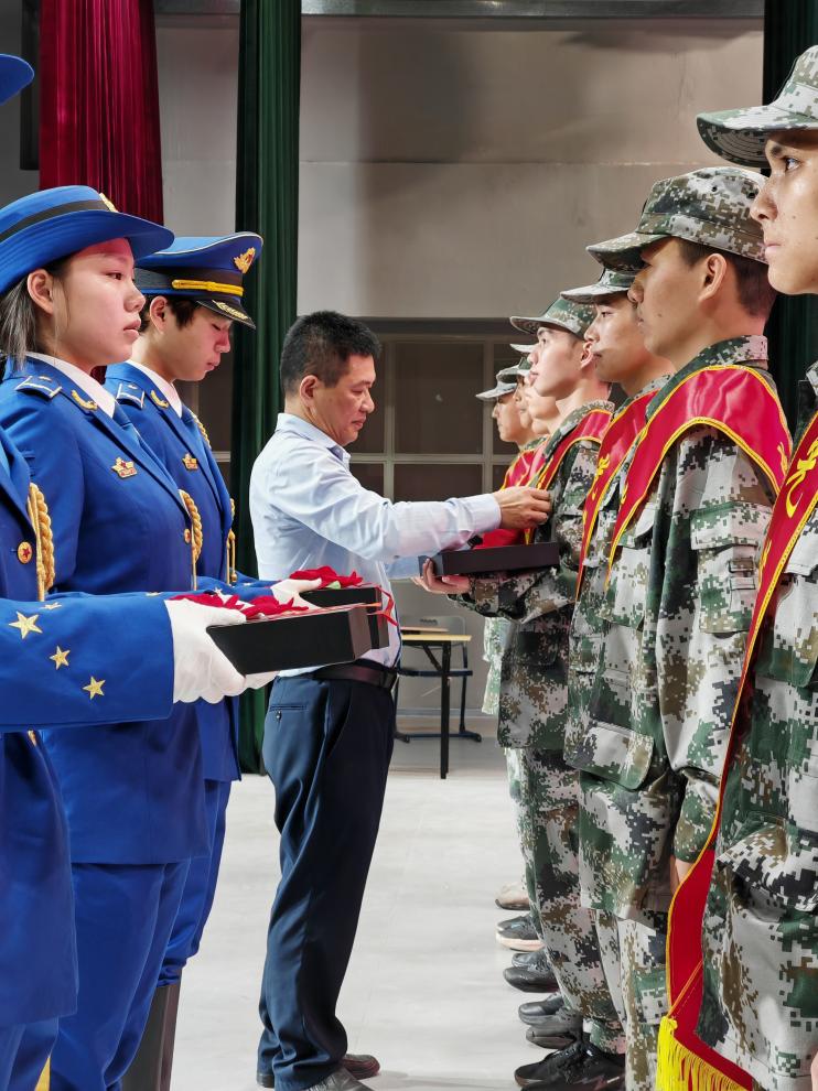 学校党委委员、副校长唐毓秋为即将入伍的8名同学佩戴绶带、红花,他在发言中寄语入伍学生坚定理想信念,牢记初心使命,把个人理想融入强军兴军的伟大实践中,刻苦学习训练,练就过硬本领,严守纪律规矩,培育优良作风,树立新时代军人的良好形象,为家乡争光,为母校添彩,并号召全体同学以入伍同学为榜样,热爱国防,关心国防,积极投身国防事业,在实现强国梦、强军梦的伟大征程中书写属于自己的精彩人生。