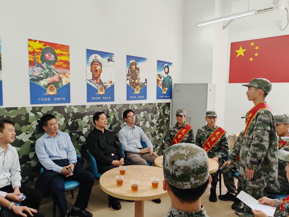 学校党委书记何汉武与各位即将参军入伍的学生亲切交流,他向入伍新兵表示热烈祝贺,寄予深切期望。希望入伍新兵能够树牢理想信念,胸怀“国之大者”,践行初心使命,坚定不移听党话、跟党走,继续发扬校训精神和工贸精神,锤炼意志品质,苦练军事本领,努力成为“有灵魂、有本事、有血性、有品德”人民解放军战士,并带动全体同学厚植家国情怀,增强国防意识,踊跃报名参军,让工贸学子的家国情怀、强国之志薪火相传,为国防和军队现代化建设贡献青春和智慧。