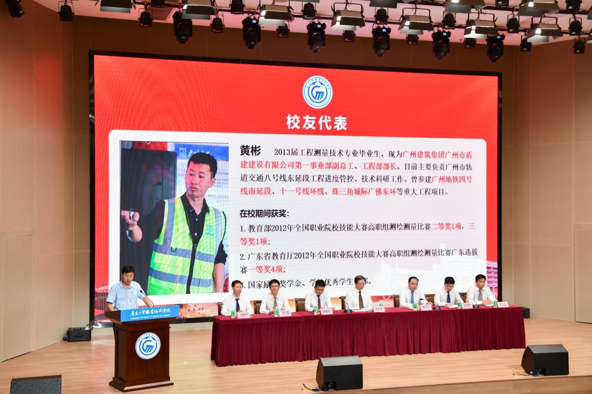 校友代表、2013届测绘遥感信息学院黄彬先生鼓励师弟师妹们要志存高远、超越自我!最后他祝愿大家逐梦无悔,母校桃李满园。