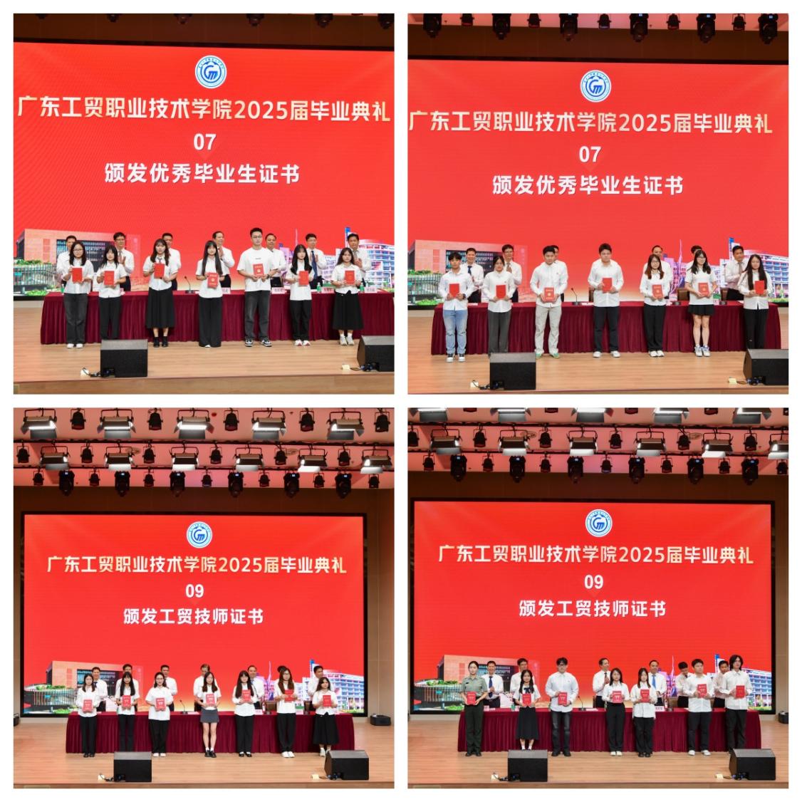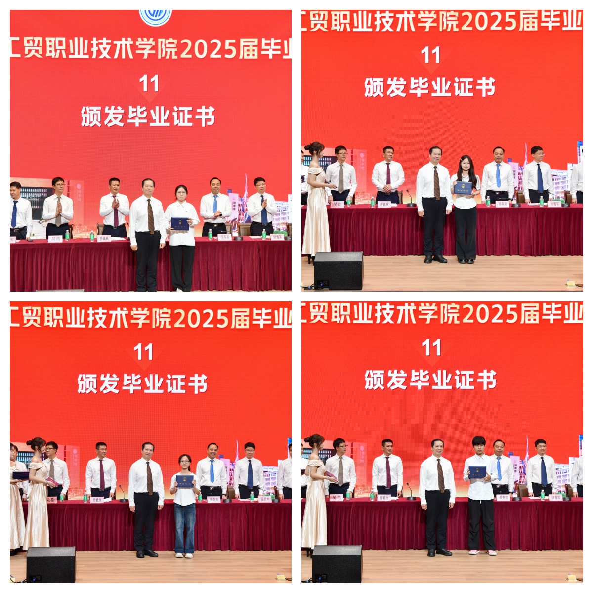 毕业典礼上,揭英荣和徐勇军分别宣读了优秀毕业生和工贸技师表彰决定,参会校领导为获奖代表颁发证书。