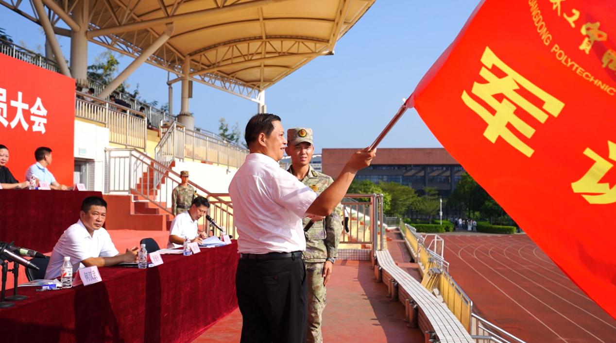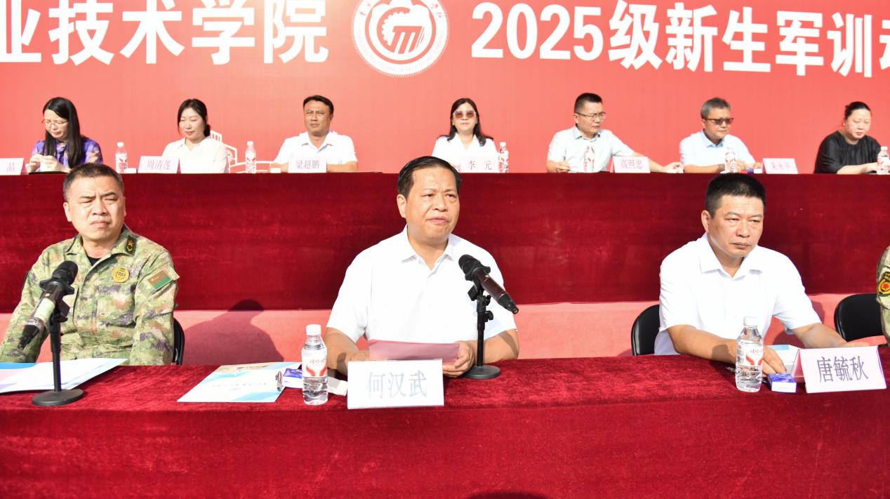 白云区钟落潭镇武装部副部长蒋彪代表承训单位讲话,他指出,学生军训是加强国防教育、培养爱国情怀的关键环节。他代表全体教官承诺将科学施训、以身作则,并勉励同学们端正态度、虚心学习,在确保安全的前提下磨砺意志、严守规定。他相信在各方共同努力下,本次军训必将取得圆满成功。