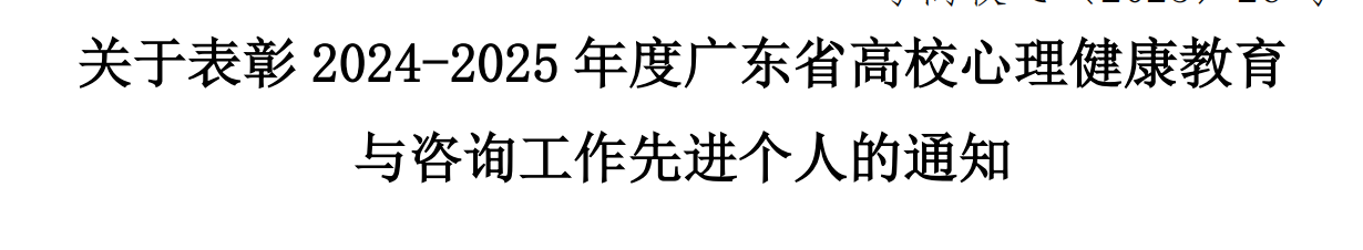 11月3日至4日,2024-2025年广东省高校心理健康教育与咨询专业委员会会员大会暨学术年会在中山举行。我校喜获2024-2025年度广东省高校心理健康教育与咨询工作多项荣誉。