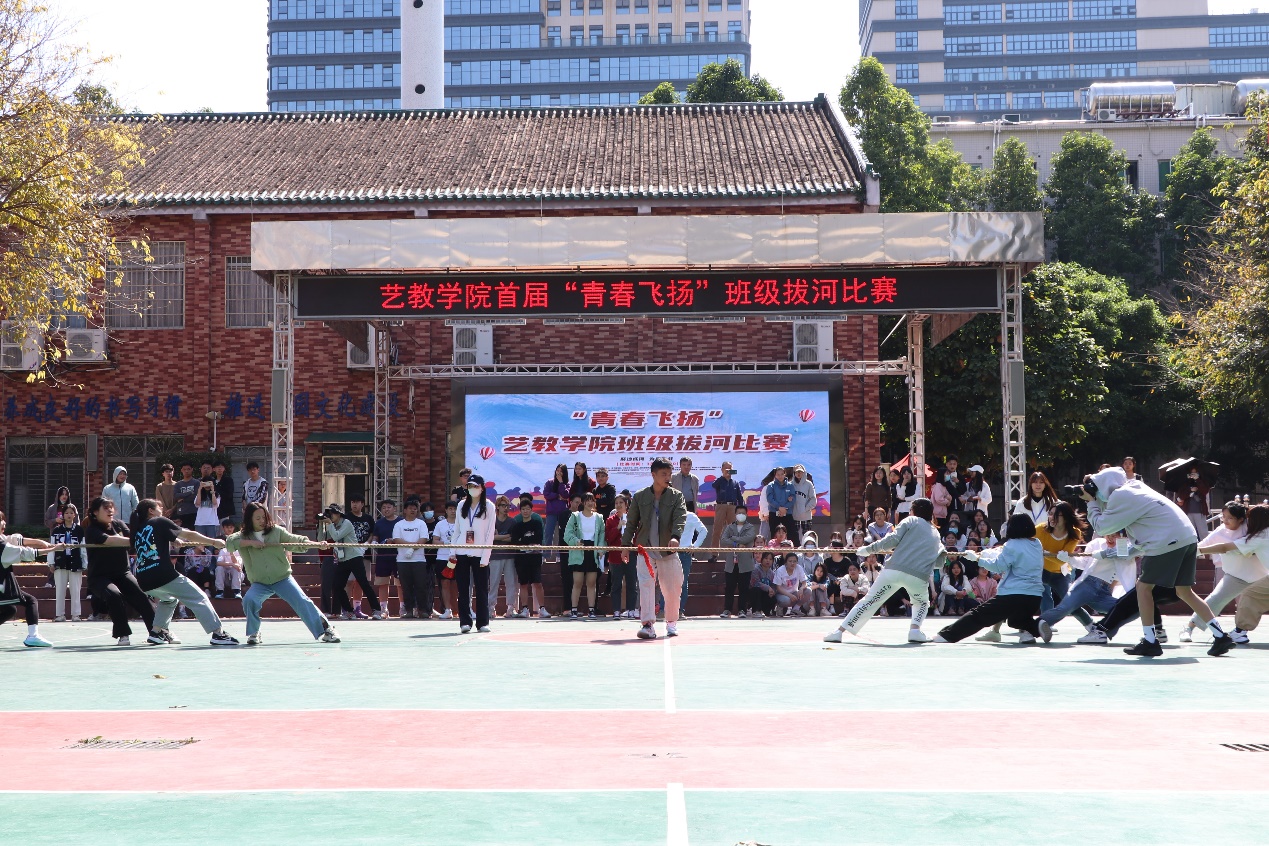 为了丰富学生们的课余生活、增进同学们的友谊、增强班级凝聚力,为了发扬勇于拼搏的体育精神,展现出同学们团结合作的精神风貌。2022年3月8日下午,艺术与教育学院举行了首届“青春飞扬”班级拔河比赛。